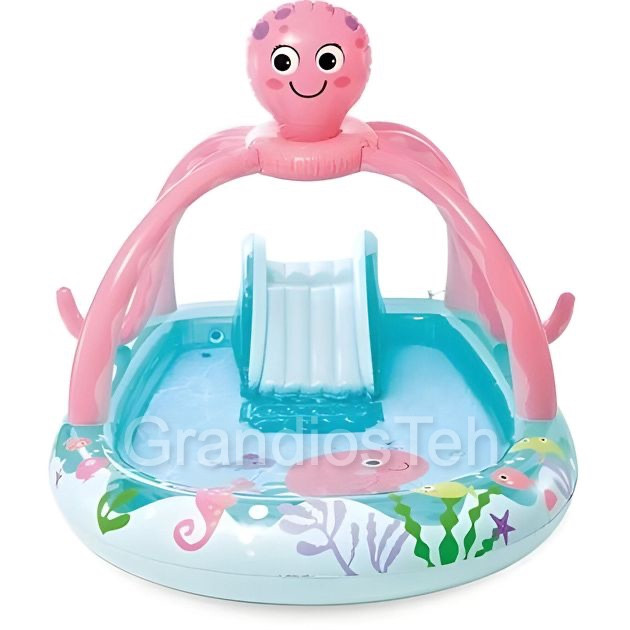Ігровий центр Intex 56138 "Восьминіг" – це яскравий і веселий надувний басейн із гіркою, душем та інтерактивними елементами, створений спеціально для активного та безпечного відпочинку малюків у спекотні літні дні. Виріб виконаний у формі восьминога з привабливим морським дизайном, що робить гру ще цікавішою. Вбудований душ (працює від садового шлангу) забезпечує прохолоду, а м’яка гірка додає веселощів. Ідеально підходить для дітей від 2 років.